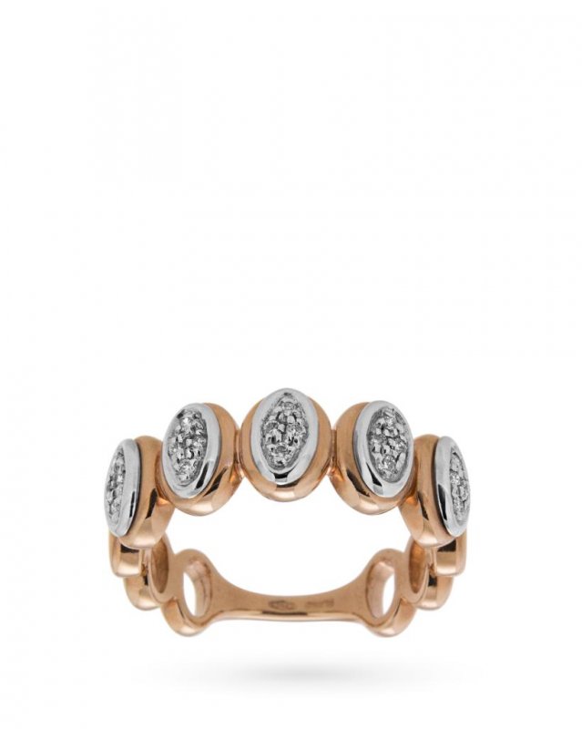 18kt rose and white gold ring with ovals of diamonds 0,20ct G VS
