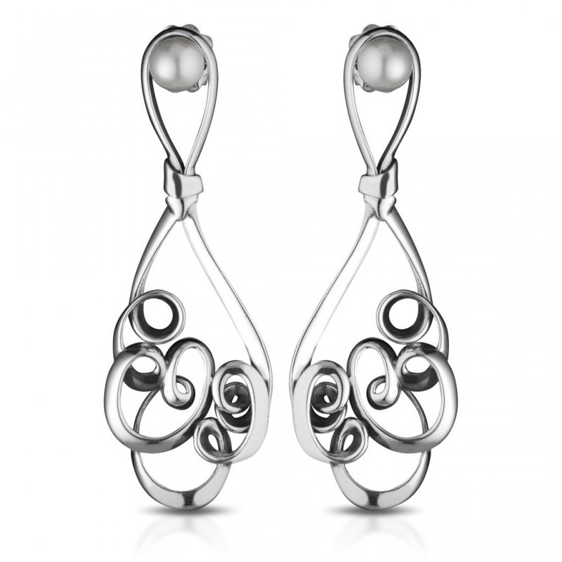 Dangling earrings in 925 silver with pearls and embroidery 6,50cm long