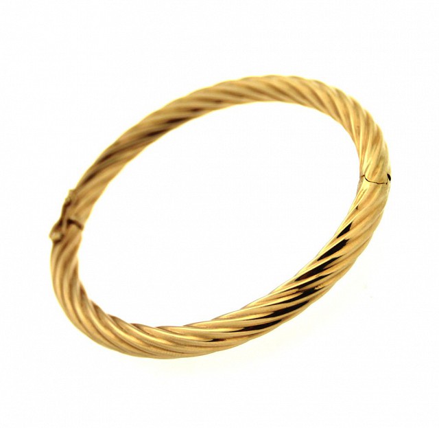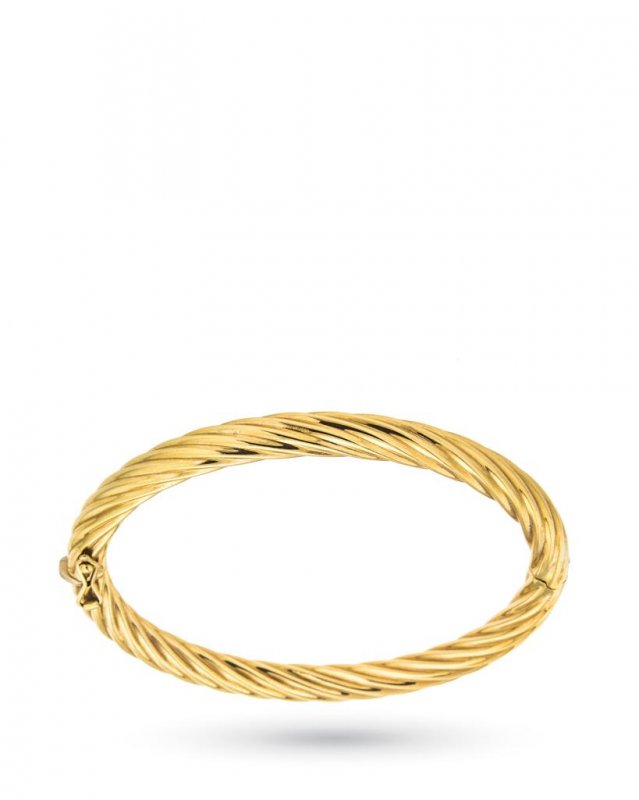 Bracelet in yellow gold, rigid oval with twisted design. Closure with sicurity system. Realizzato in italia.