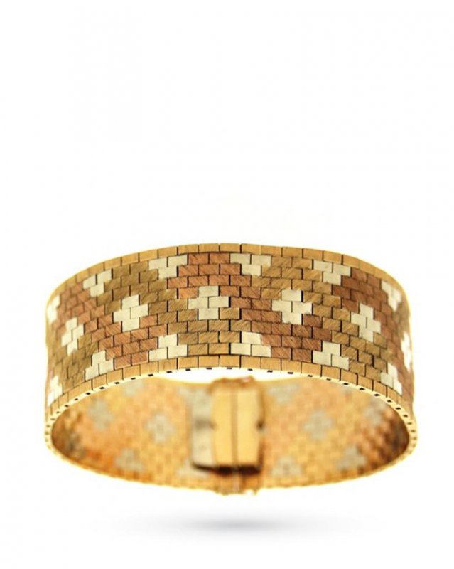 Vintage bracelet in 18kt yellow, white and rose gold with bricks